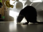 I think he is in a terminal decline. In his last few weeks of life I am giving him all the peanut butter he wants. I am making sure he has easy access and opportunities to have water through his bottle, a dish, and in watery foods I give him. I am not letting him fall off the countertop. I scratch him behind his scruffy neck even though he won’t sit still much. He deserves the best rat hospice possible.
