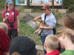 When this pictured one was displayed to visitors after being banded and before being adopted and released a "plant" in the crowd shouted, "Does it have a facial disc?" Yes, sir, it does. The naturalist explained that the bird courses low over marshes and hunts by sound as well as sight.