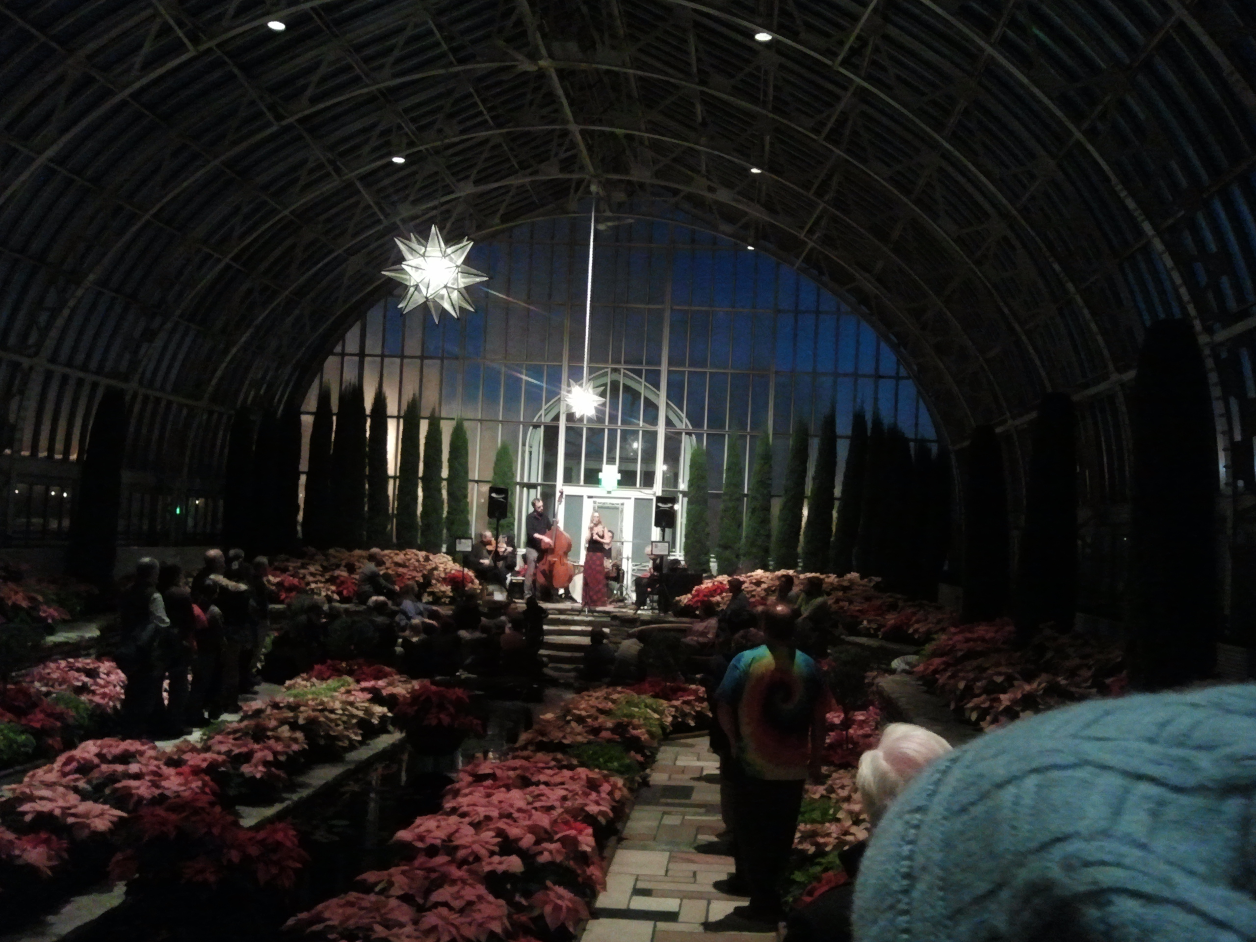 The place is amazing, the best of the Victorian greenhouse tradition. And as the band plays on the ambiance changes as daylight fades and becomes dusky, then dark. The music is played on speakers throughout the conservatory, allowing you to walk among those amazing tropical plants while enjoying "Nuages" and "Minor Swing."