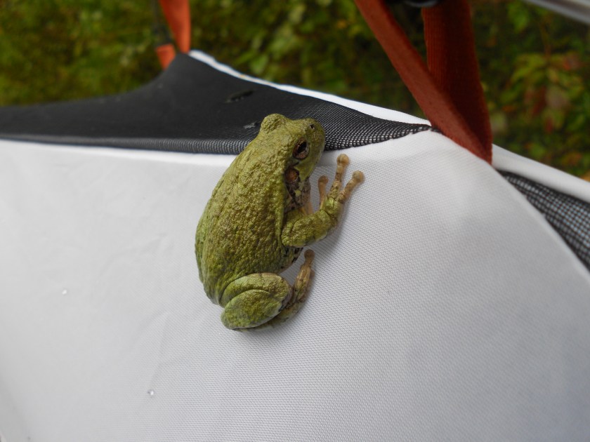 Included: not the first time I have woken up to find that a treefrog had crawled under my rainfly to escape the cold overnight rain.