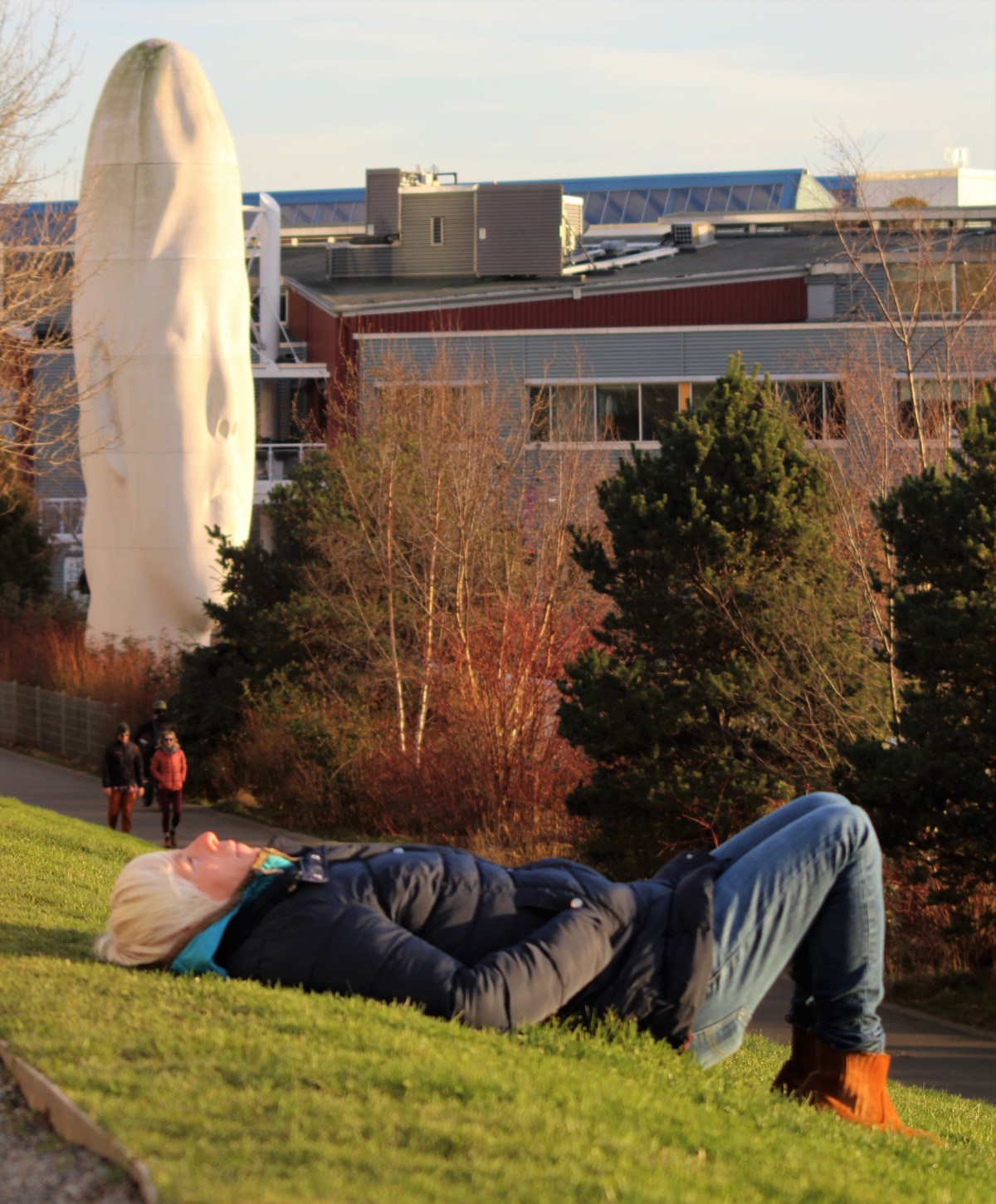 This woman was luxuriating in Olympic Sculpture Park last week with “Echo” by Jaume Plensa in the background, echoing the color of her hair.
