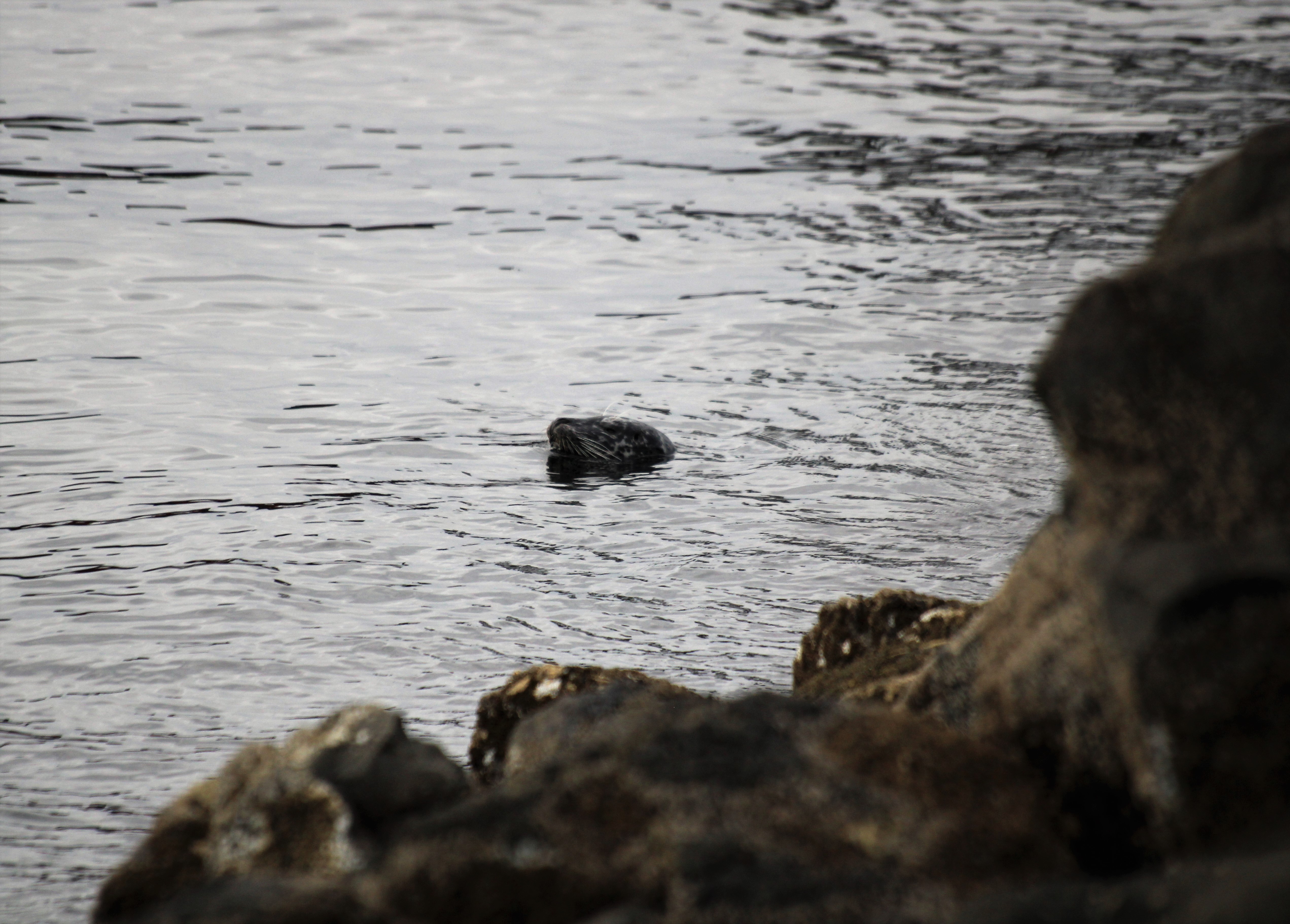 The photo is of a harbor seal: I finally got a photo of one of these smelly cute little fuckers surfacing near Olympic Sculpture Park.