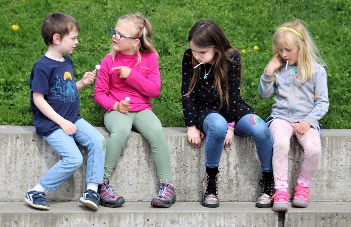 The girl in the gray pony shirt was tired of the bickering. She wished they could all get along and have fun. She proposed that they take a break from arguing and enjoy the suckers that they had bought from the picnic basket. She hoped that a sweet treat would calm them down and make them forget their differences.