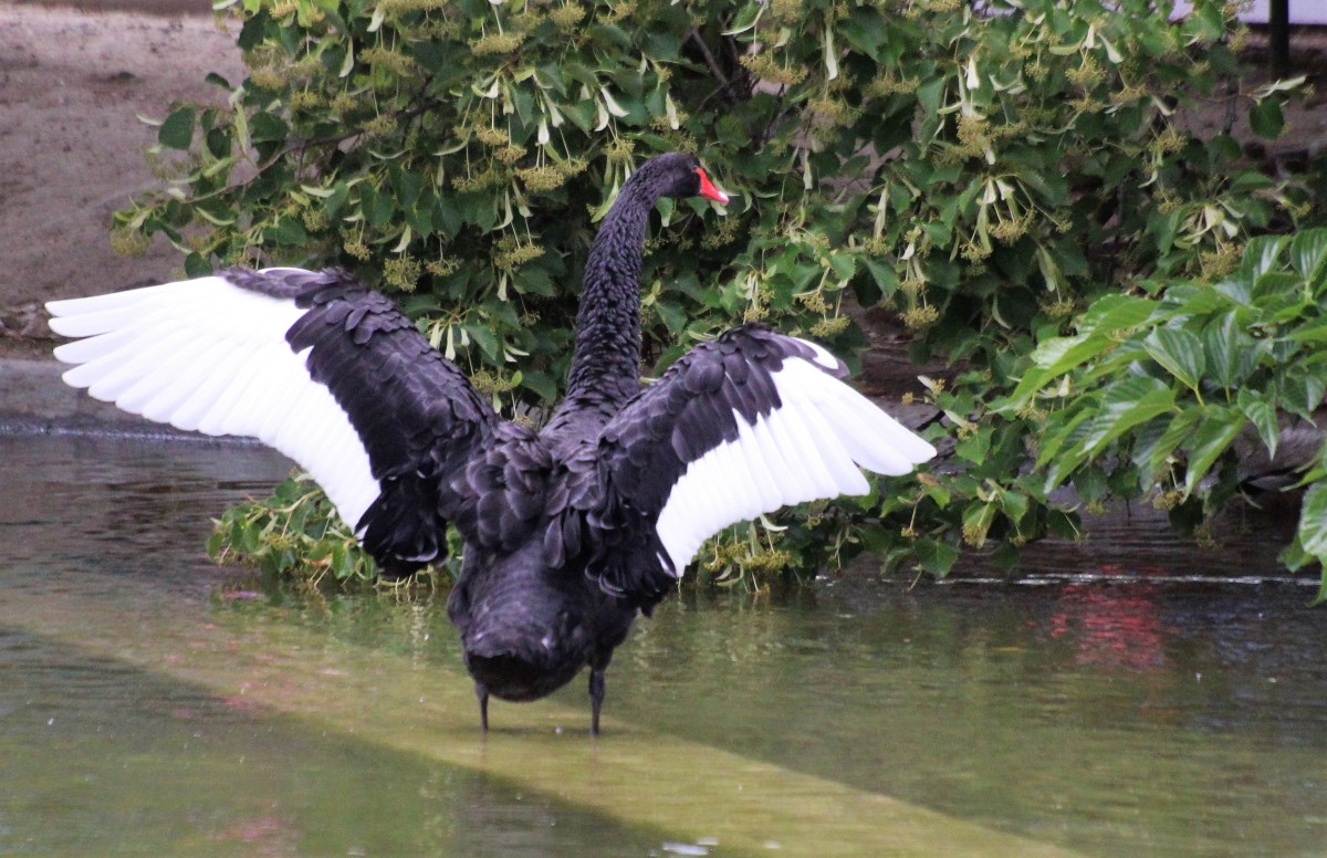 The black swan (cygne noir) that lives on the pond in Parc Montsouris. A black swan represents the idea of an inconceivable event that was previously dismissed, suddenly becoming reality.