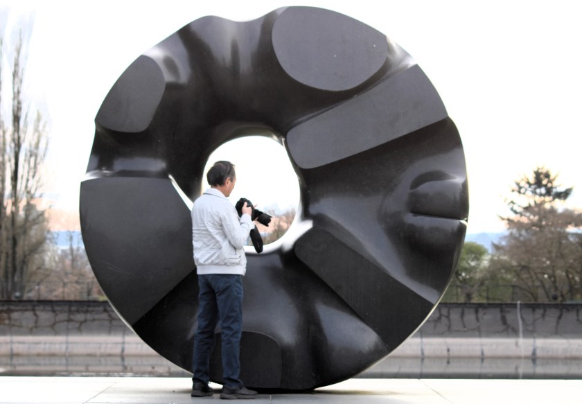 Unrelated to the text: A guy grabbing a photo at Seattle’s Sphincter outside the Asian Art Museum.
